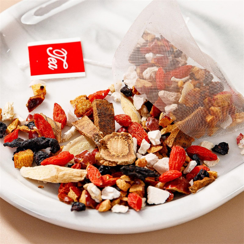 This tea comes individually wrapped bags but without filter. You will need to pour the content into a filter and keep it in hot water for about 5 mins or so. The longer you steep it, the better the flavor. The ingredients are dried so they will expand when in water so make sure to use a big enough filter for it, you can also put it directly in the water as some of the ingredients are quite tasty to eat when they are soften. I like eating the jujube date and the goji berry. The drink has an herbal taste and with a mild sweetness. It’s a very healthy tea that is enjoyed as hot and cold. I’d highly recommend this tea.